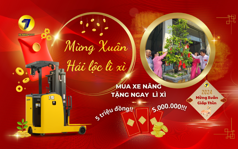 Chương trình khuyến mãi đặc biệt Đầu Xuân – Hái Lộc Như Ý. Bạn đang tìm kiếm một chiếc xe nâng chất lượng, tăng năng suất làm việc. Hãy liên hệ ngay với XE NÂNG 7777 để được tư vấn, tìm cho mình một chiếc xe nâng ưng ý, giá tốt. Đặc biệt nhận ngay bao lì xì trị giá lên đến 5 triệu đồng khi mua xe nâng!