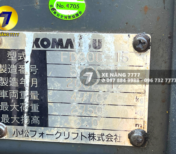 Xe nâng dầu 3 tấn KOMATSU FD30C-15