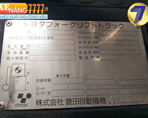 Xe nâng dầu TOYOTA 02-7FD15