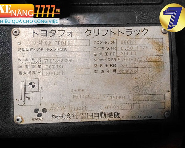 Xe nâng dầu TOYOTA 02-7FD15