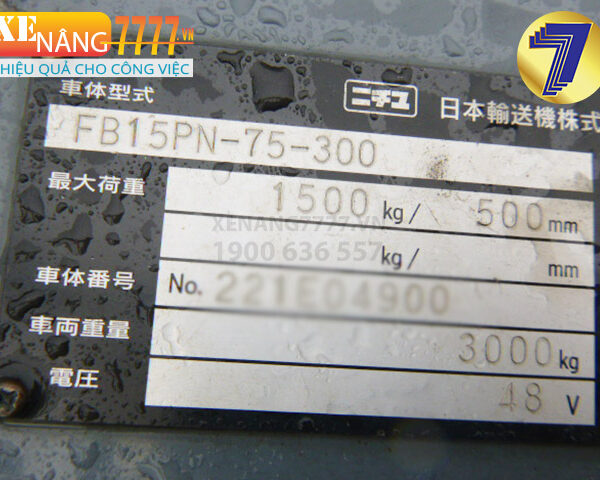 Xe nâng điện ngồi lái NICHIYU FB15PN-75-300
