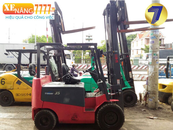 - Sức nâng 3500kg, Chiều cao nâng 3000mm, Ty giữa chui container, Sàng càng