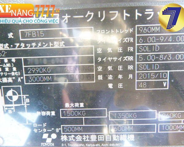 Xe nâng điện ngồi lái TOYOTA 7FB15