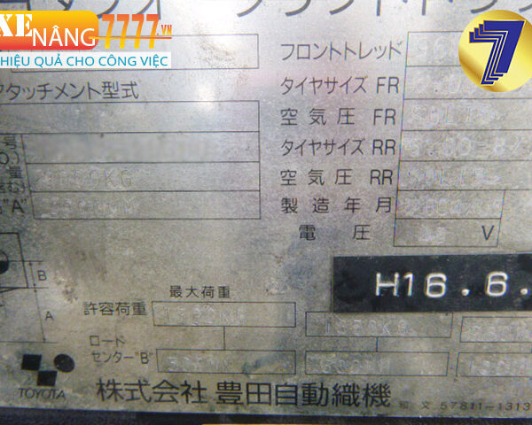 - Sức nâng 1500kg, Chiều cao nâng 3000