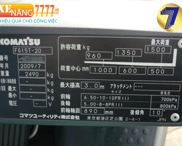 - Sức nâng 1500kg, chiều cao nâng 3000mm,