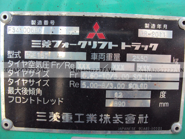 - Sức nâng 1.5 tấn, chiều cao nâng 3.000mm, năm sản xuất 2011