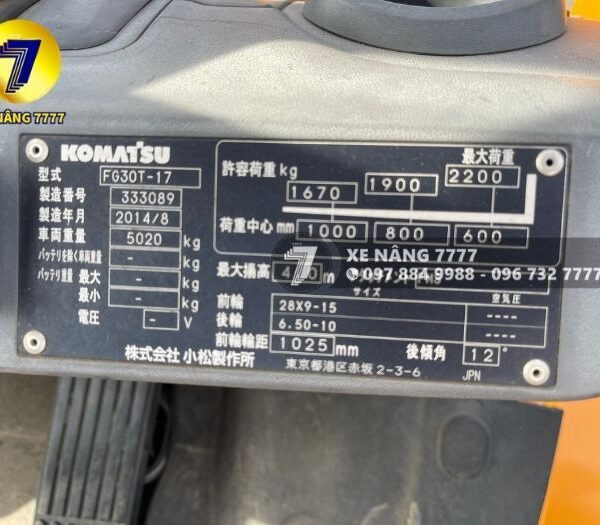 MODEL FG30T-17 SỐ SERI